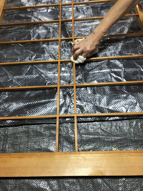 サッシに付いた糊も丁寧に拭き取っていきます。