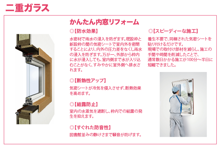 では、簡単に二重ガラス窓にするメリットを説明しますね。